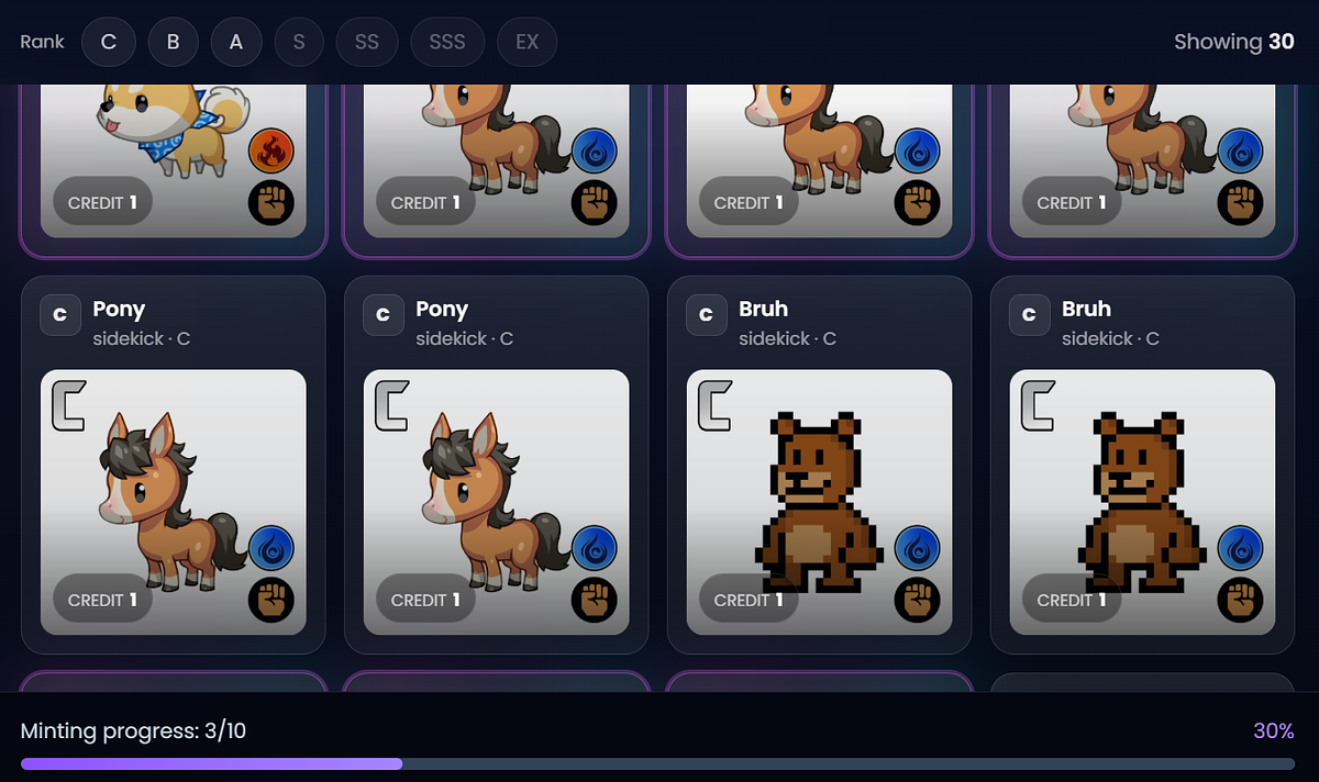 🔹Pay Credits in the List menu to mint your in-game Sidekicks directly to your wallet.