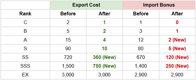 🔹 Reduce Export costs for frequently traded Sidekicks (Import credits adjusted to match)