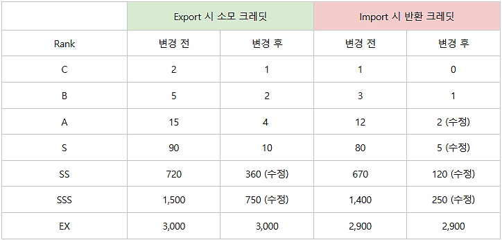 🔹사이드킥 반출(Export) 비용 부담 완화 (Export 시 크레딧 필요량 완화에 맞춰 Import 시 크레딧 지급량도 함께 조정)