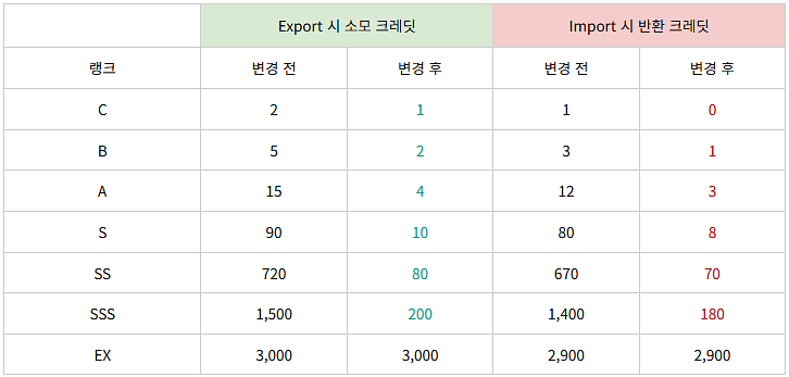 🔹사이드킥 반출(Export) 비용 부담 완화 (Export 시 크레딧 필요량 완화에 맞춰 Import 시 크레딧 지급량도 함께 조정)